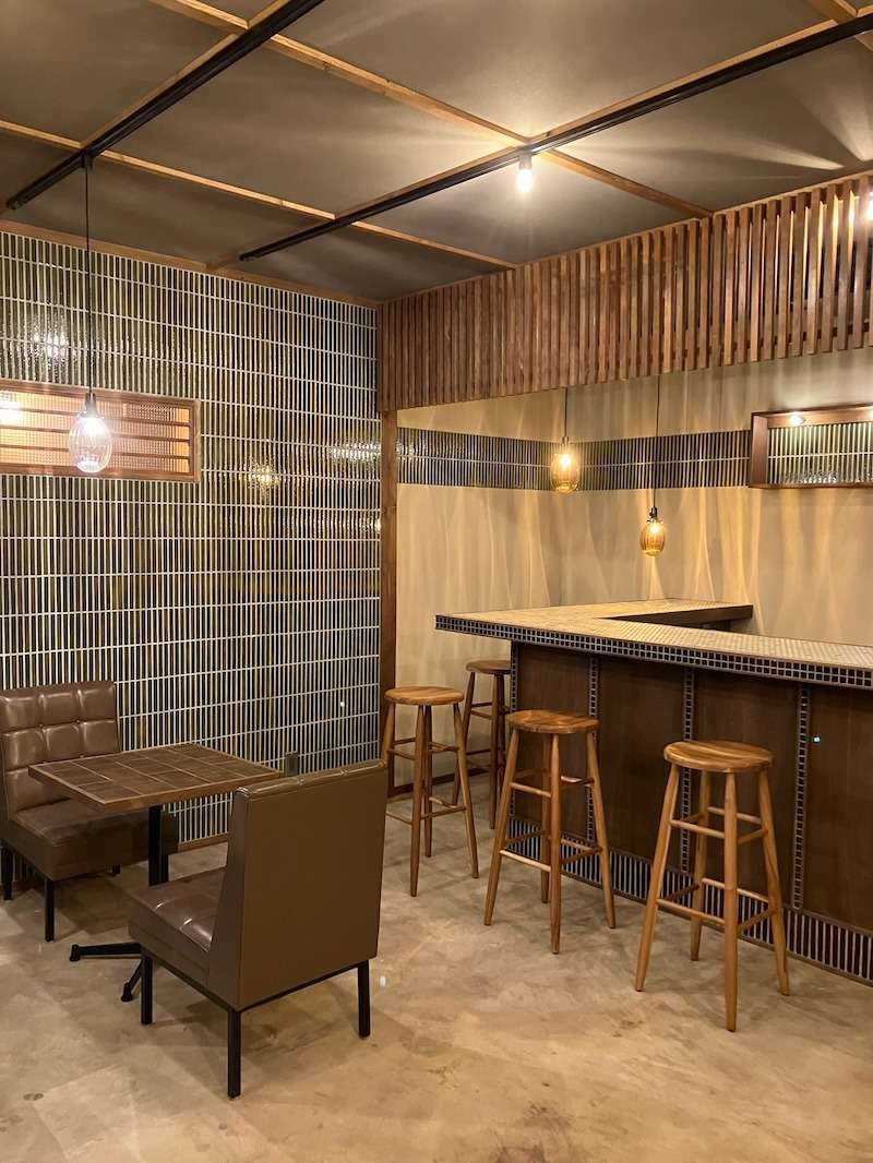 内外装にふんだんに使ったタイルは地元多治見のもの。壁紙にはない立体感。一枚一枚微妙に違う焼き物ならではの色むらと風合い。タイルの産地多治見の街にしっくり馴染む、温故知新をテーマにしたお店が完成しました。