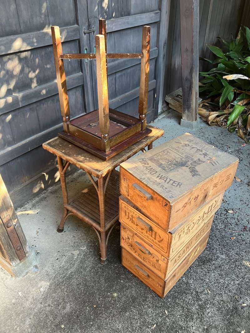 古い家具はちょっと。。。と抵抗ある方もいるかもしれませんが、木箱や食器、フックなど古道具いわゆる雑貨たちは生活にとりいれやすい。それらがあるだけでぐっと空間に深みがでますよ。買取させていただいた古道具たちは洗ったり、なおしたりして、店舗トリムソウにすでに並んでいます。ぜひ宝探しにいらしてください。